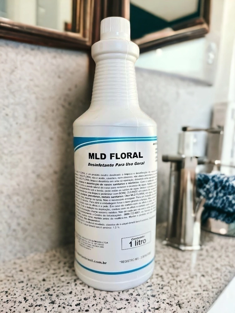O MLD não é ácido, cáustico, nem abrasivo, não ataca porcelana ou metais, nem danifica encanamento ou sifões. Formulado à base de quaternários de amônio, MLD limpa e desinfeta em uma só operação, deixando uma agradável fragrância floral no ambiente.