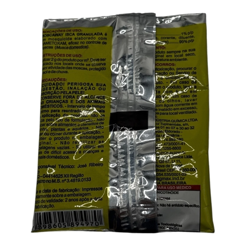 O Moscaway isca granulada é um mosquicida elaborado com Tiametoxam, eficaz no controle de moscas.