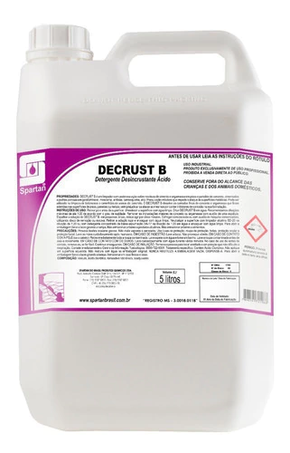 O DECRUST B é um limpador com poderosa ação sobre resíduos de cimento e argamassa em pisos e paredes de concreto, porcelanato, cimentados e pedras porosas em geral (mineira, miracema, ardósia, carranquinha, etc.). Pode ser utilizado na limpeza de betoneiras e caminhões de usinas de concreto.