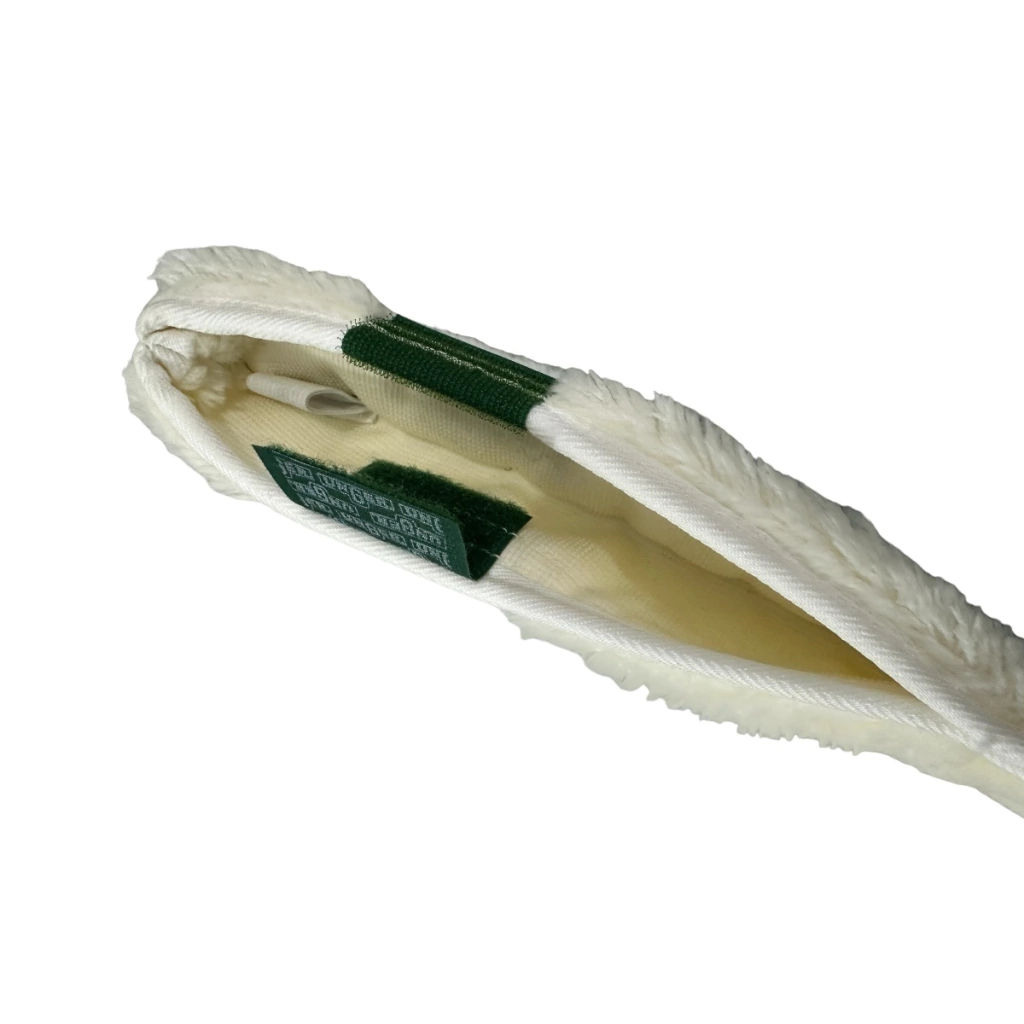 Refil Luva do Lavador para lavagem de janelas com tecido sintético de pelúcia na frente e faixa de almofada texturizada nas costas com fecho de velcro.