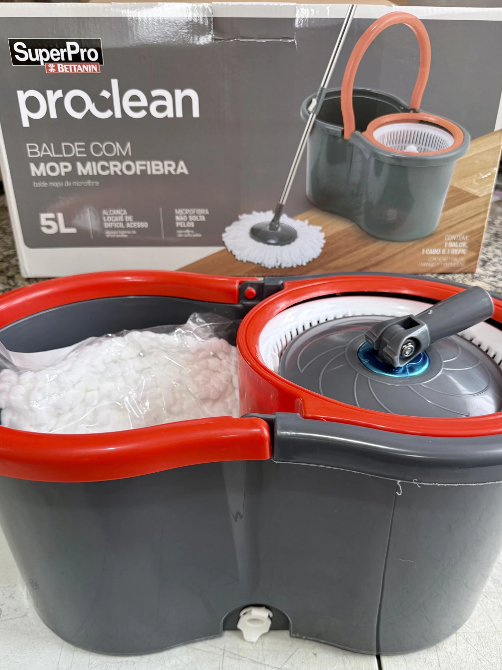 Material altamente resistente, possui cabo com pressão manual de inclinação de 360° e MOP fabricado em microfibra perfeito para você que busca combinar diversas funções de limpeza como, secar, lavar e limpar.